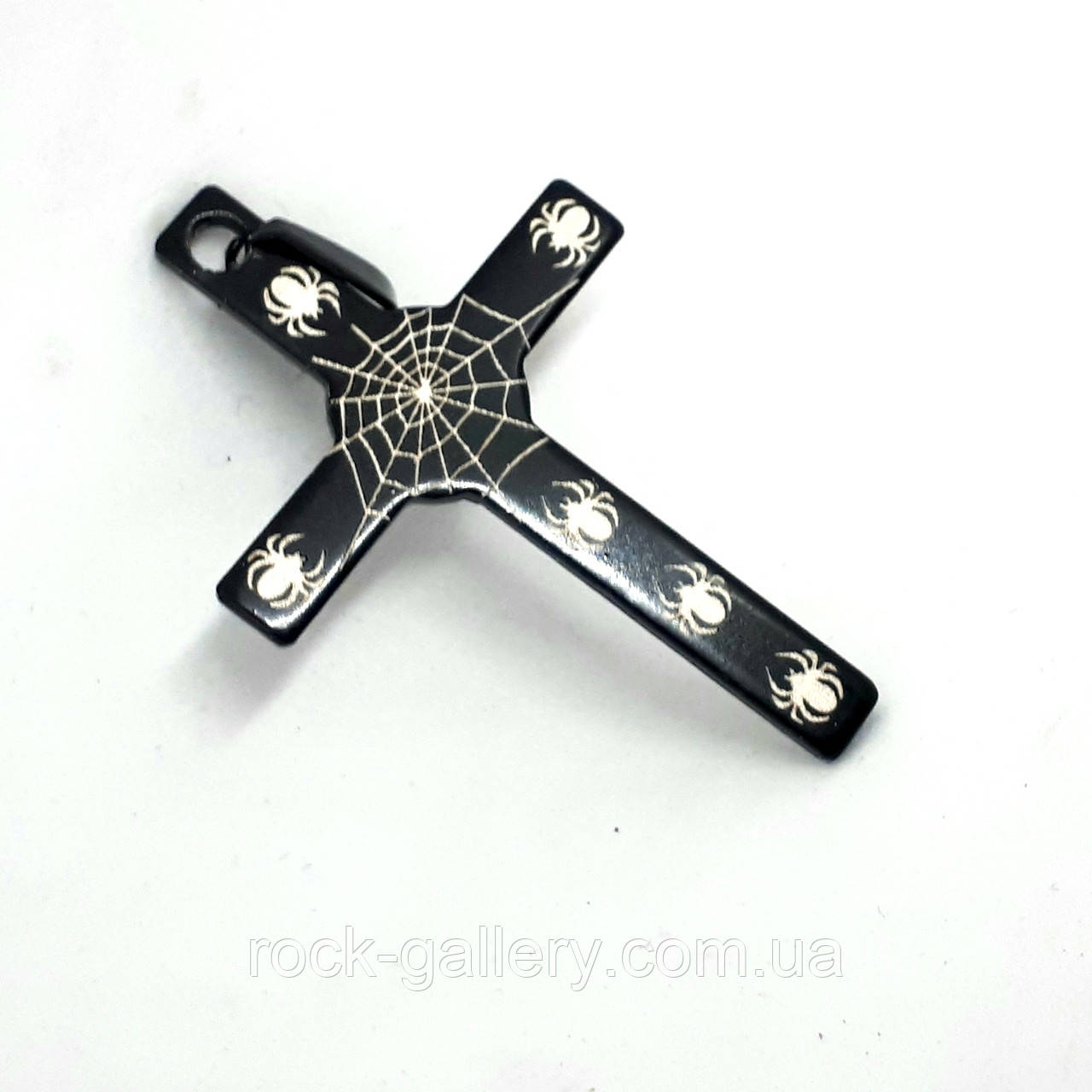 -10%Кулон хрест з рис. павутина, мед.сталь